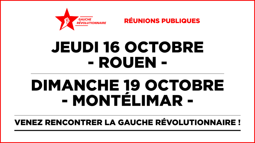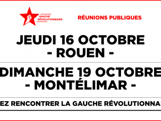 Réunions publiques cette semaine à Rouen et Montélimar Comment dégager Macron, ses gouvernements et toutes les politiques pour les capitalistes ? Vous êtes les bienvenu-es à nos réunions-débat : Jeudi 16 octobre, dès 18h30 Réunion-débat [... lire la suite]