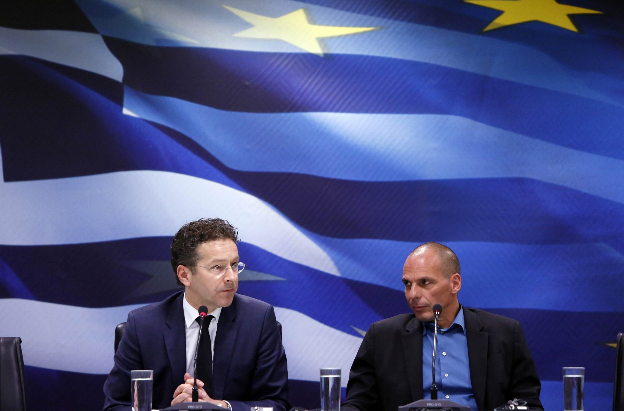 Dijsselbloem, président de l’Eurogroupe et Varoufakis, ministre des finances grecs